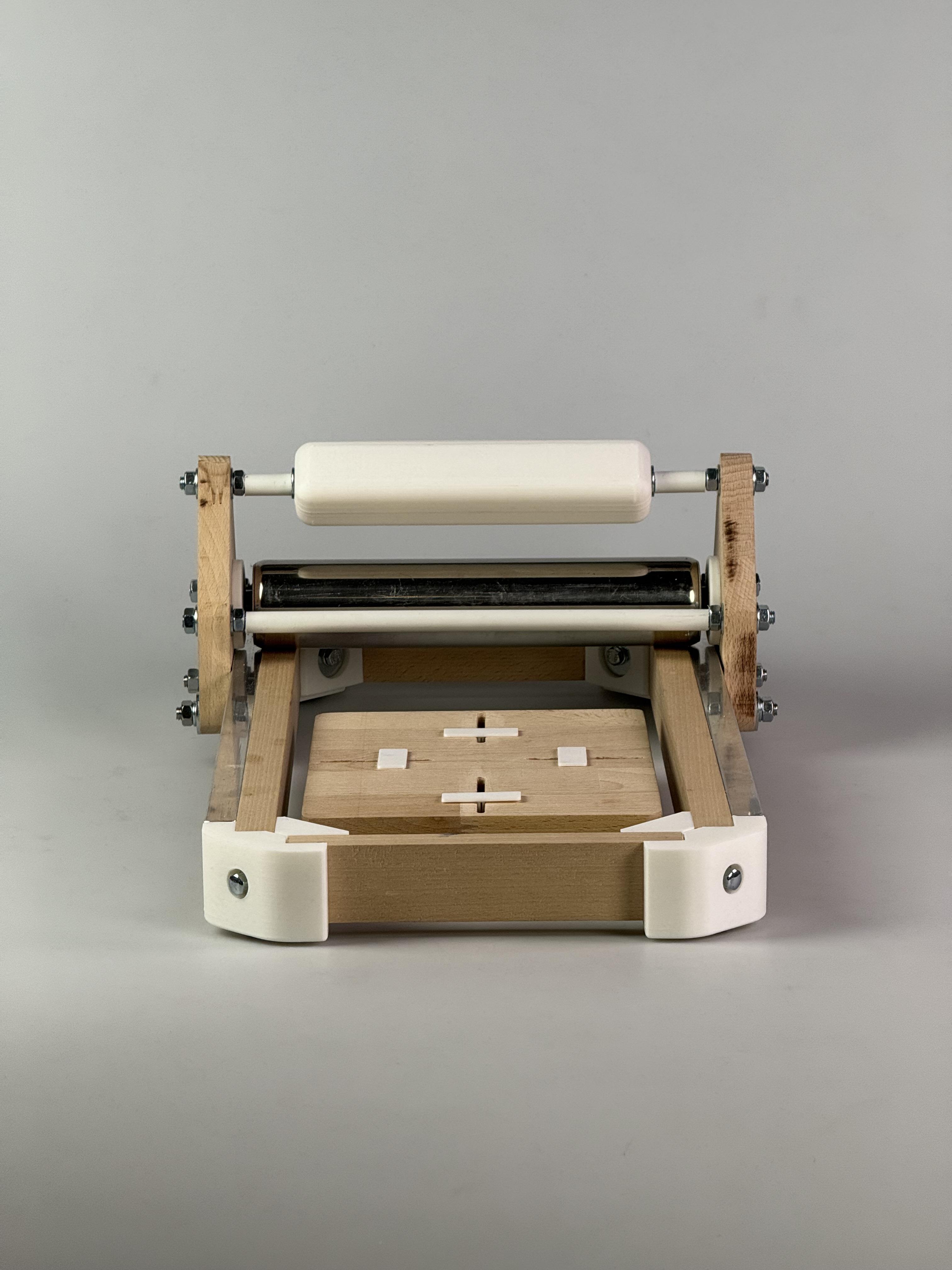 An Open Design printing press that is lightweight, portable and designed for a wide audience, for printing techniques using matrices made of various materials.